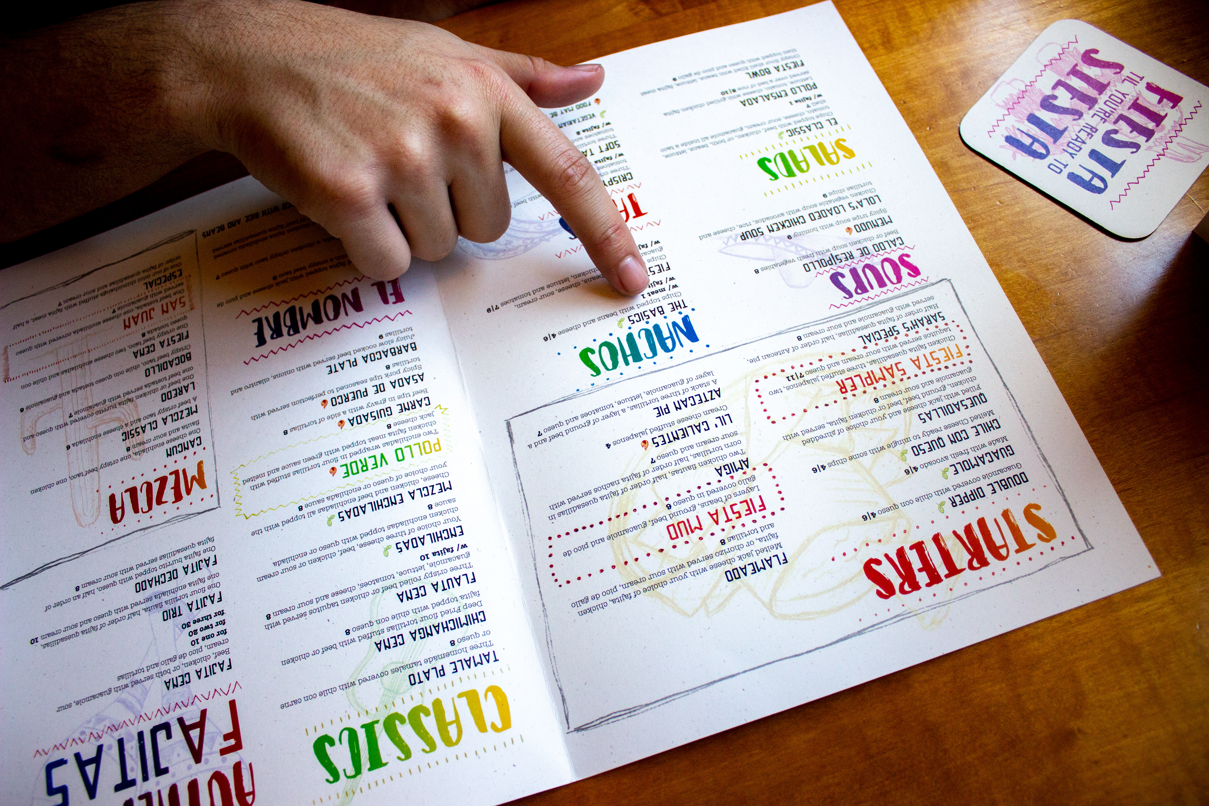 Fiesta Taqueria was opportunity for me to highlight my hand illustration skills as well as match it with my understanding of typography. This project was a fun challenge because with a name like "Fiesta Taqueria" I knew I had some opportunity to explore relationships with color and illustrations. This project I took risks by working with gradients in my type as well as crafting my own crayon wrappers, which may have been the best part for me.