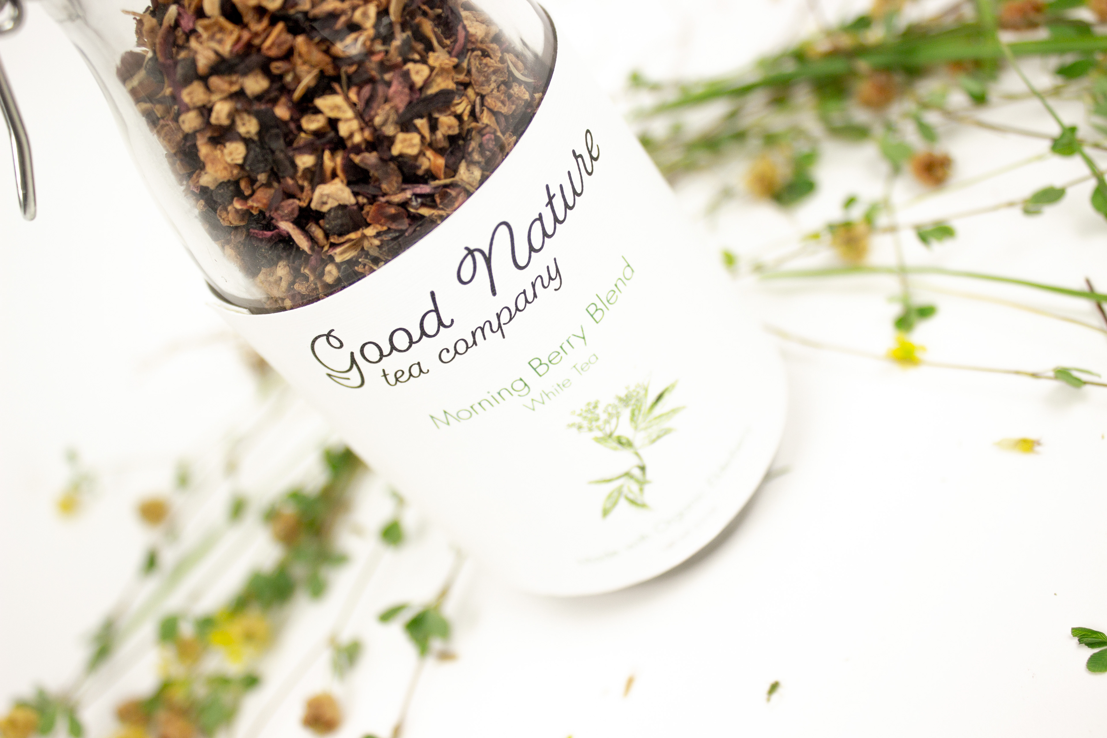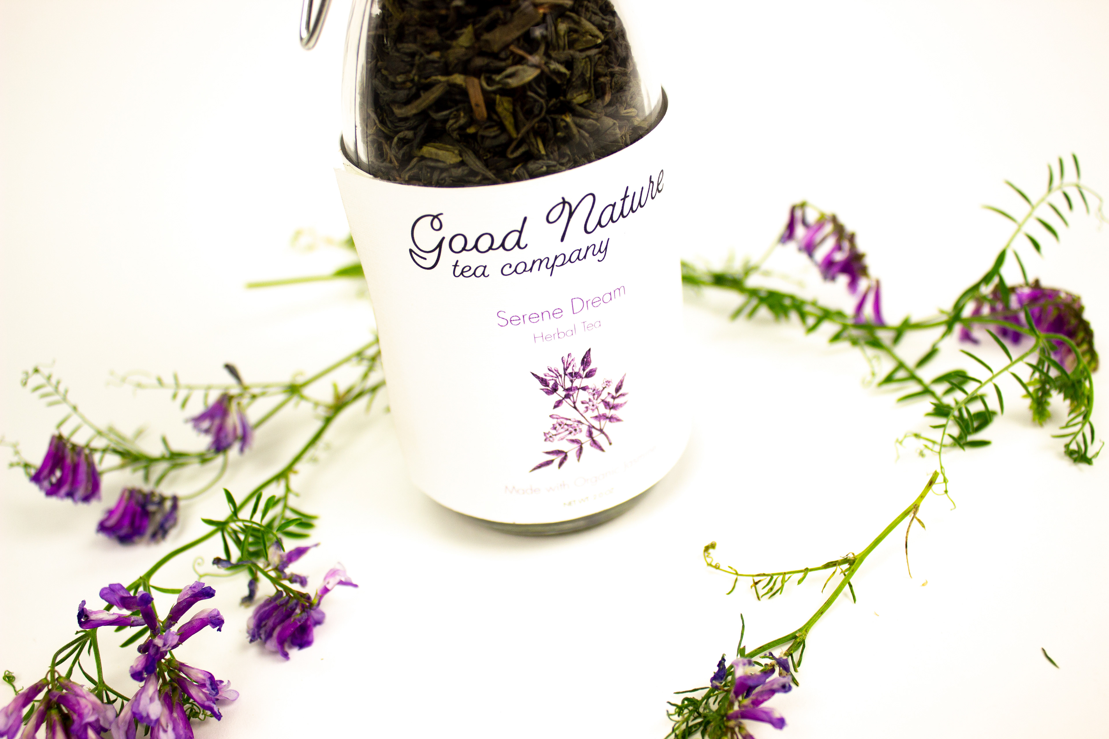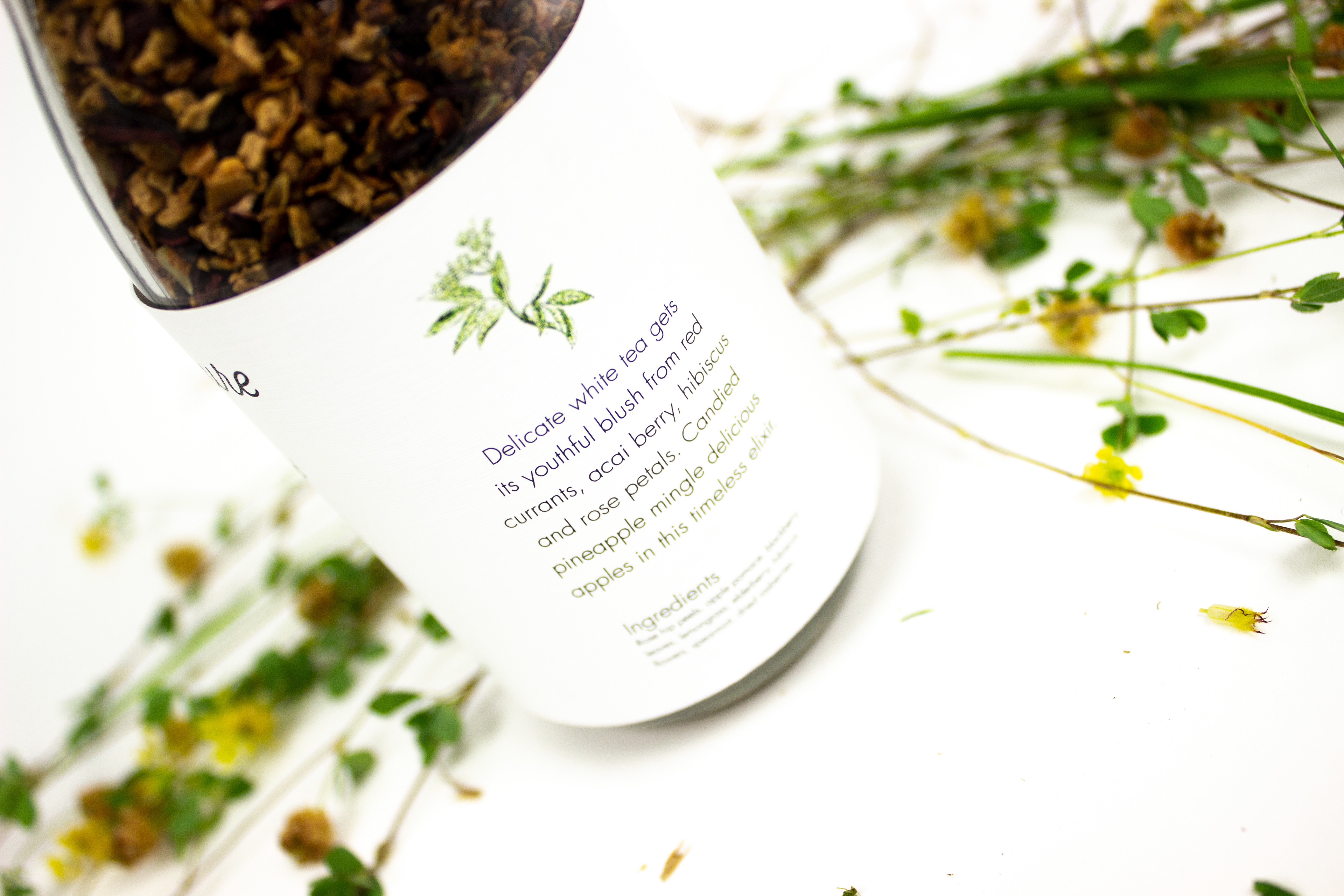 If I could go back and redo this project I would capitalize the T and C for tea company. Let's just focus on my cool photography with flowers that match the tea and packaging.